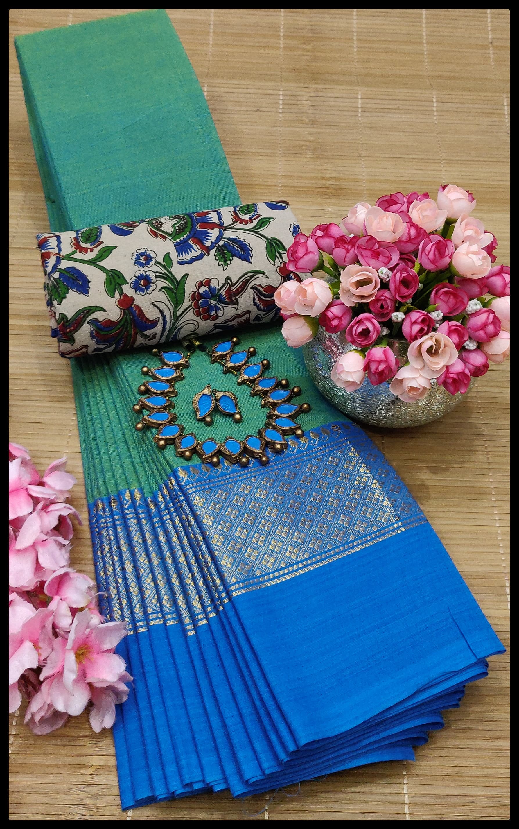 Regular price Rs. 999.00Sale price Rs. 999.00 Regular price Rs. 3,999.00Unit price / perPure 80 Count Chettinad Cotton sarees with trendy borders 🌹 Only saree (5.5 mtrs) @999+$ 🌹 with Kalamkari blouseExtra @149 🌹 Terracotta Set Extra @500 Shipping...