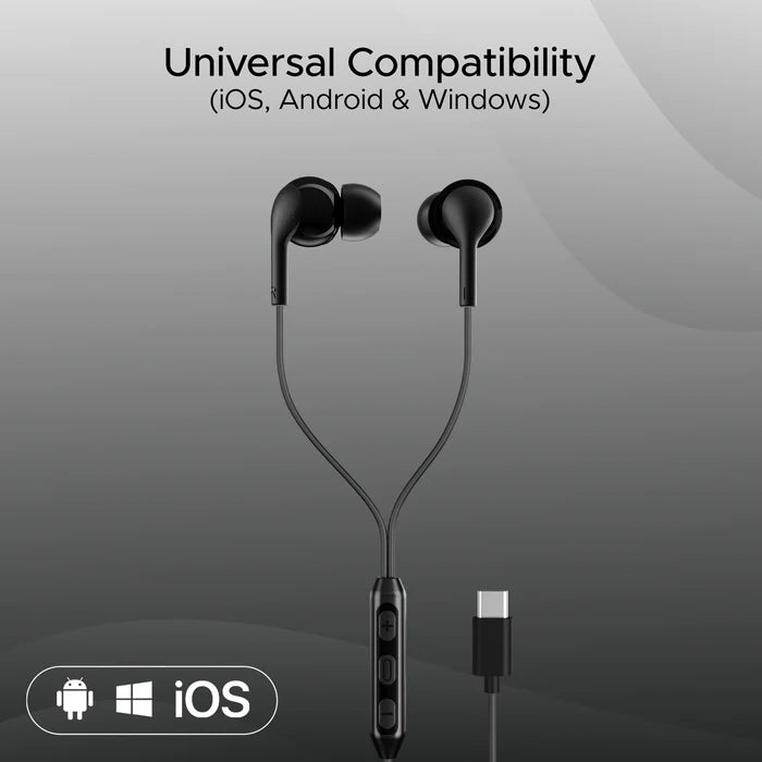 Portronics Conch Theta C in Ear Type C Wired Earphones with in Line HD Mic, Powerful Audio, 14.2mm Driver, Unique Earbuds Design, TPE Anti Tangle Wire, in line Controls, Wide Compatibility(Black)