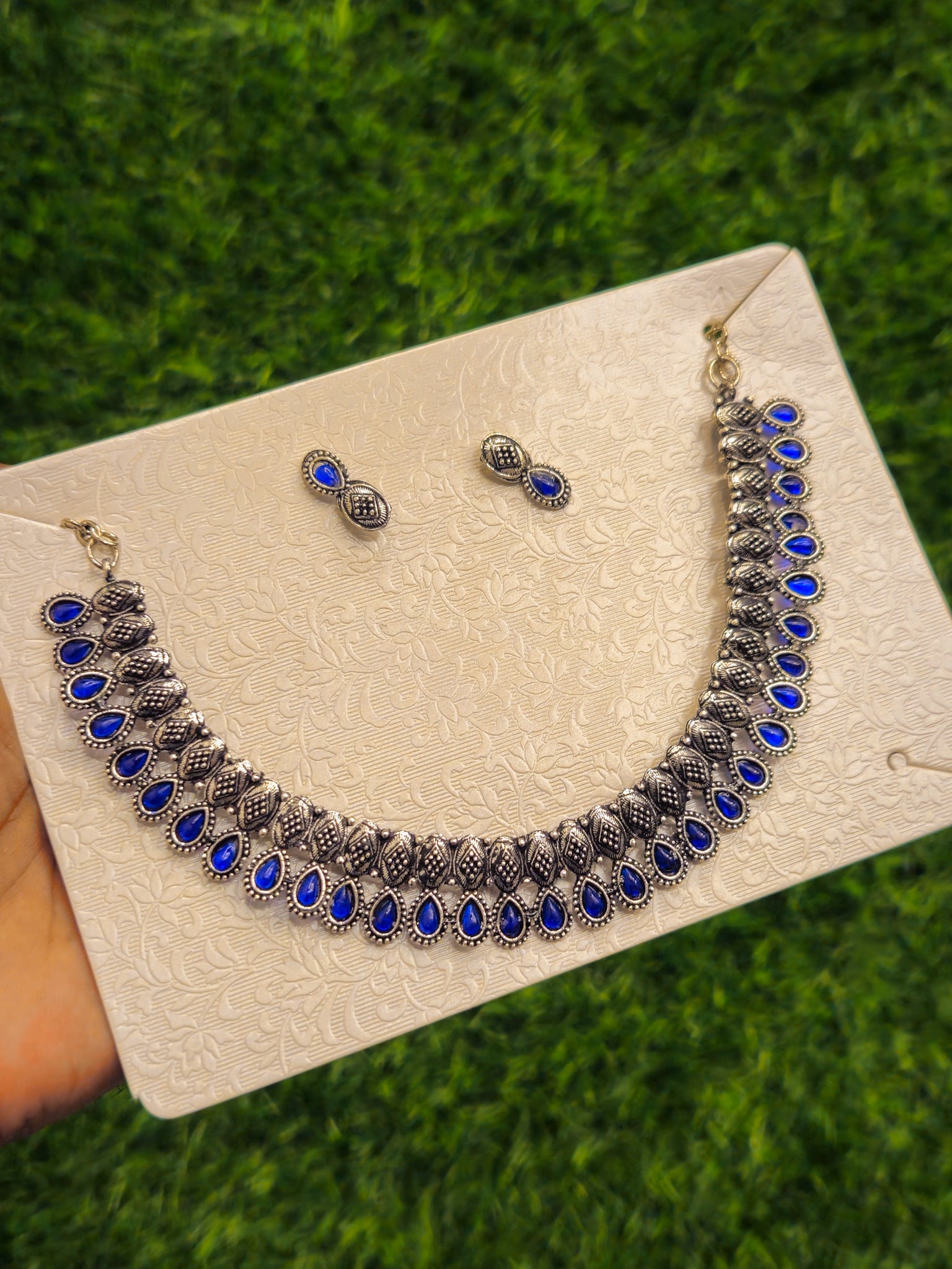 This chic oxidized necklace 🌿 brings a blend of vintage charm and modern style. Its intricate detailing and bold design make it a standout accessory for ethnic and casual looks alike 🎨. Lightweight yet striking, this piece adds a statement to your outfit without overwhelming it 💫. Perfect for those who love a touch of tradition with a contemporary twist 🌺.