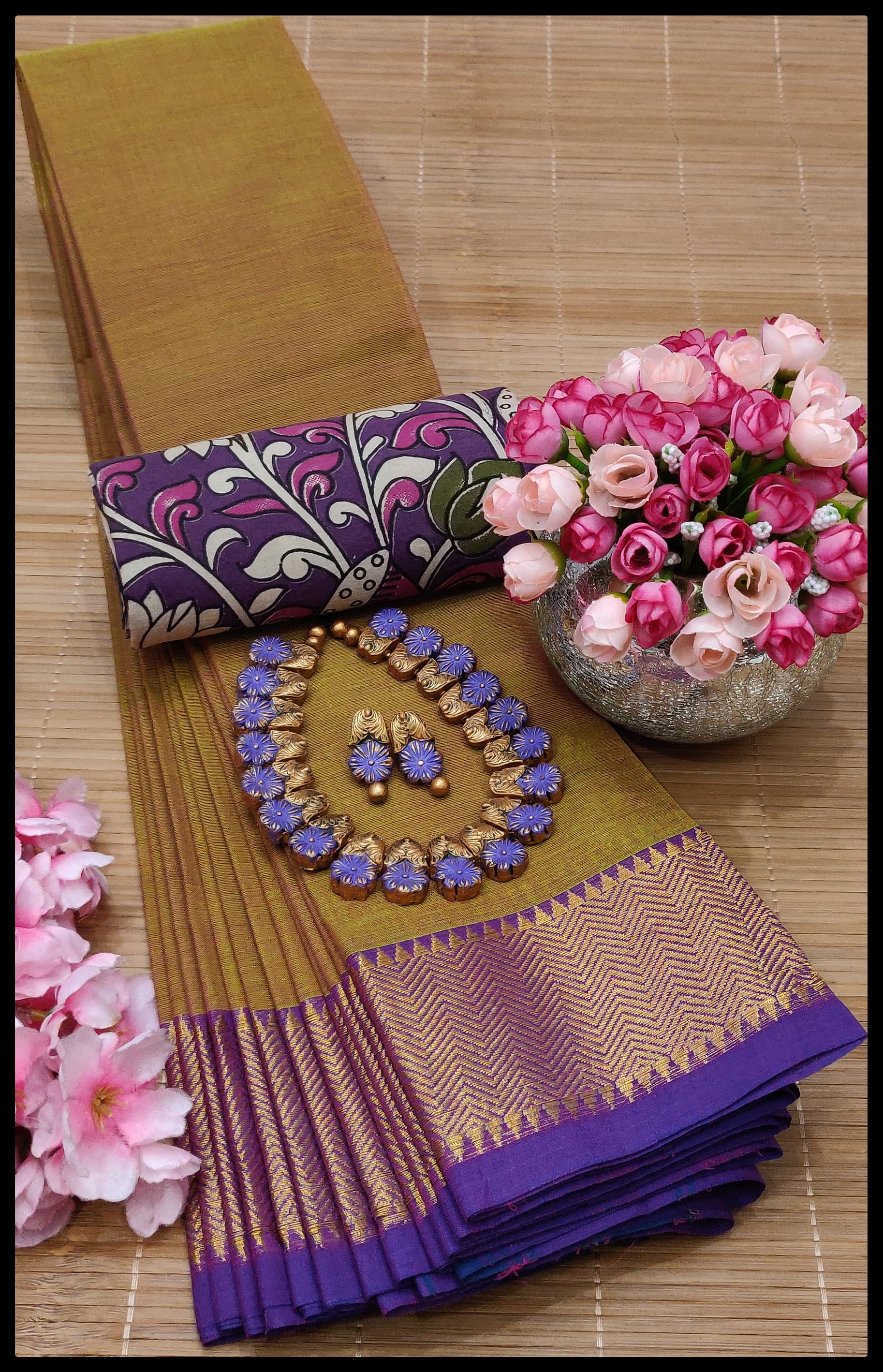 🌹 with Kalamkari blouse